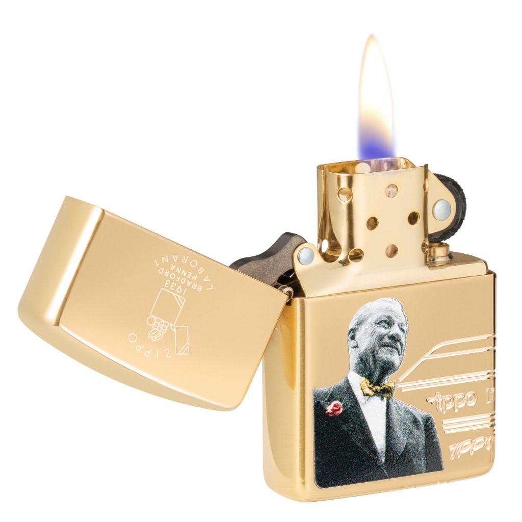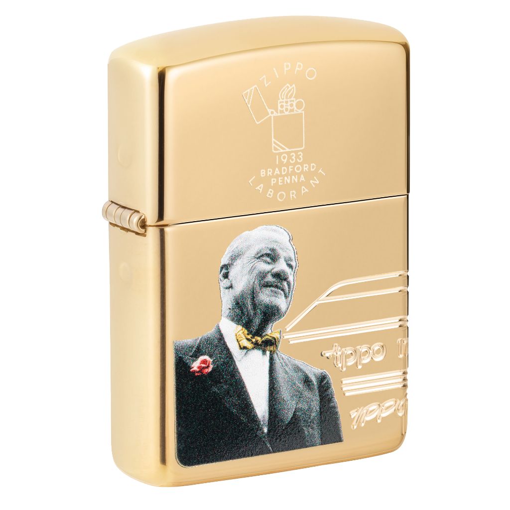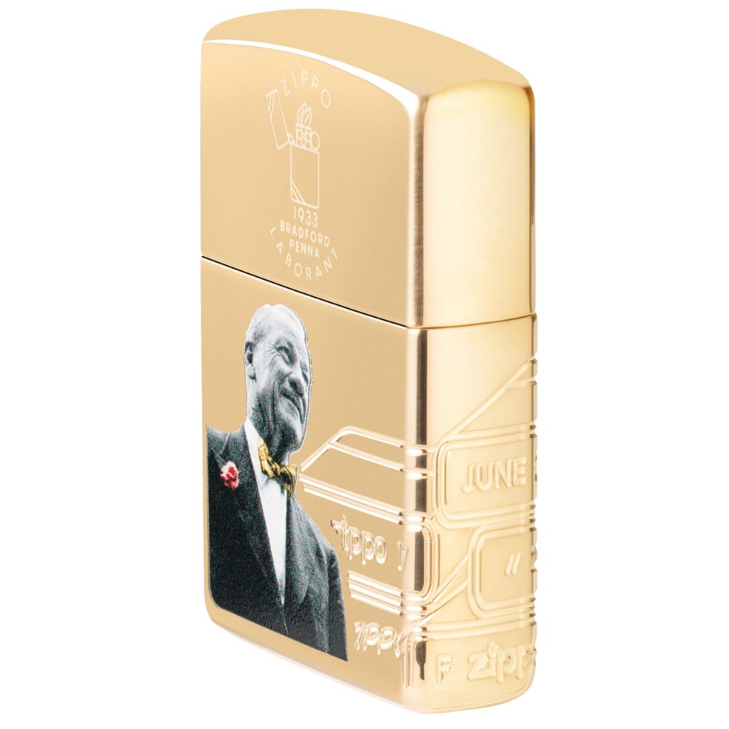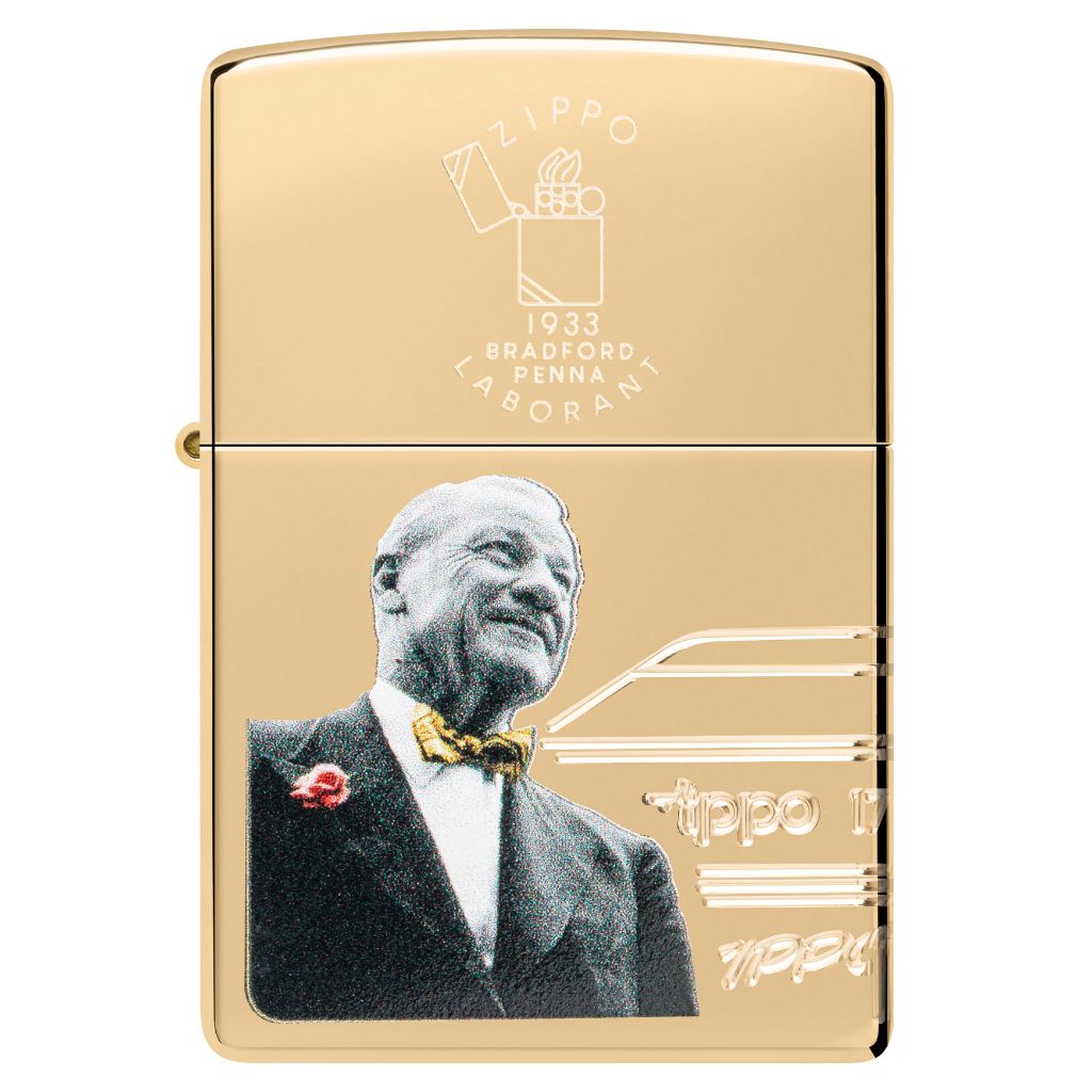 Available exclusively at zippo.com, our Founder’s Day Collectible features a Color Image portrait of George G. Blaisdell over a MultiCut design of stylized Zippo bottom stamps, which extends around to the back of the Armor® High Polish Brass case and commemorates both Mr. Blaisdell’s birthday and Zippo’s founding year.