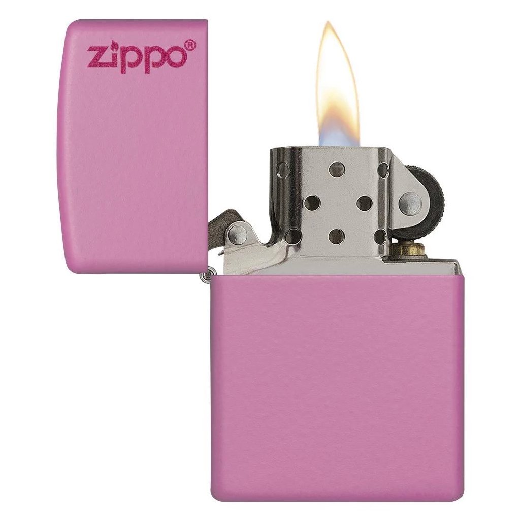 Pink matte Lighter adorned with the classic Zippo logo. Comes packaged in a gift box. For optimal performance, fill with Zippo lighter fluid.