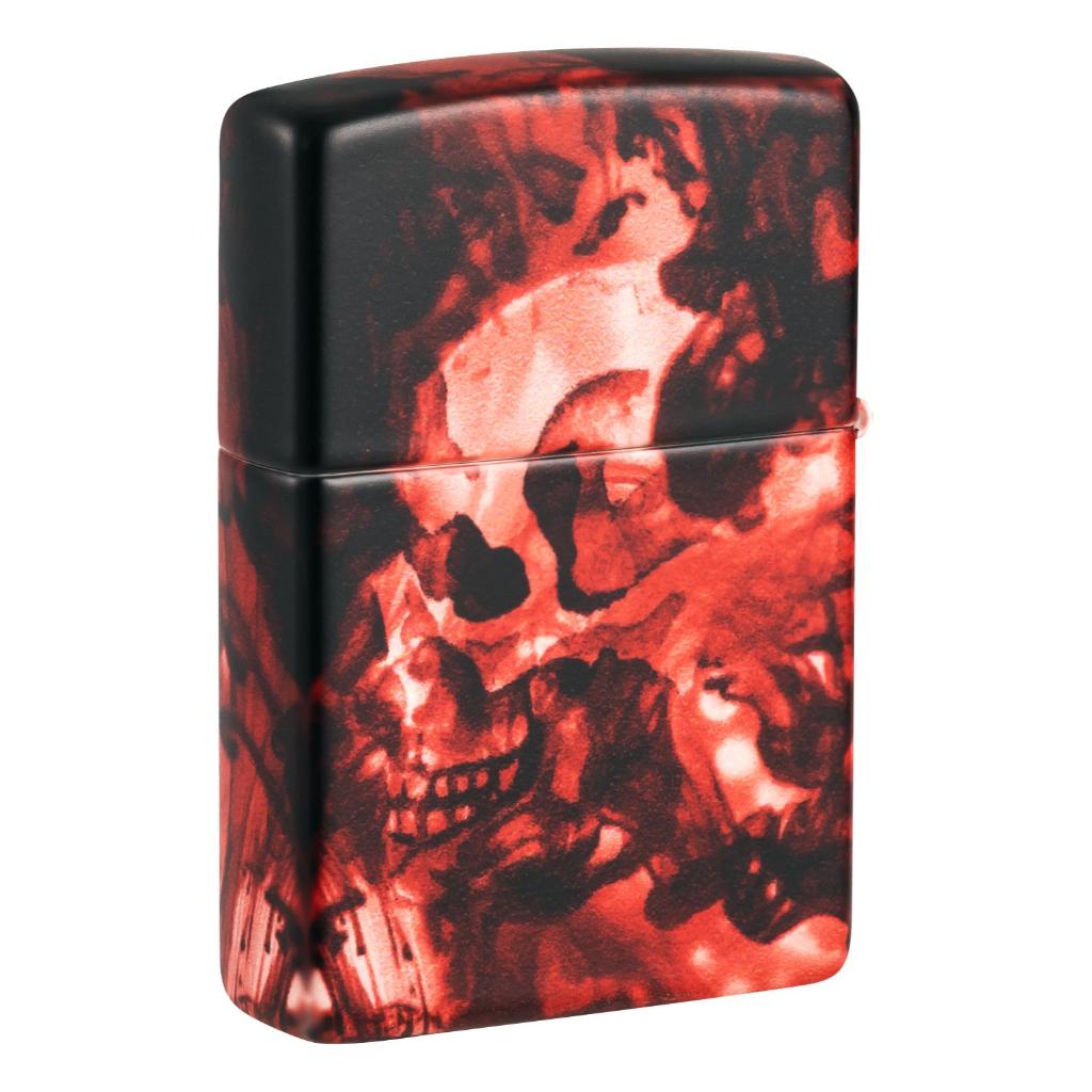 Grinning skulls emerge from putrid, swirling vapor on this beautifully ominous 540 Color lighter. Mimicking an ink drop painting, the seamless design surrounds all sides of the sinister piece. Comes packaged in a gift box. For optimal performance, fill with Zippo lighter fuel.