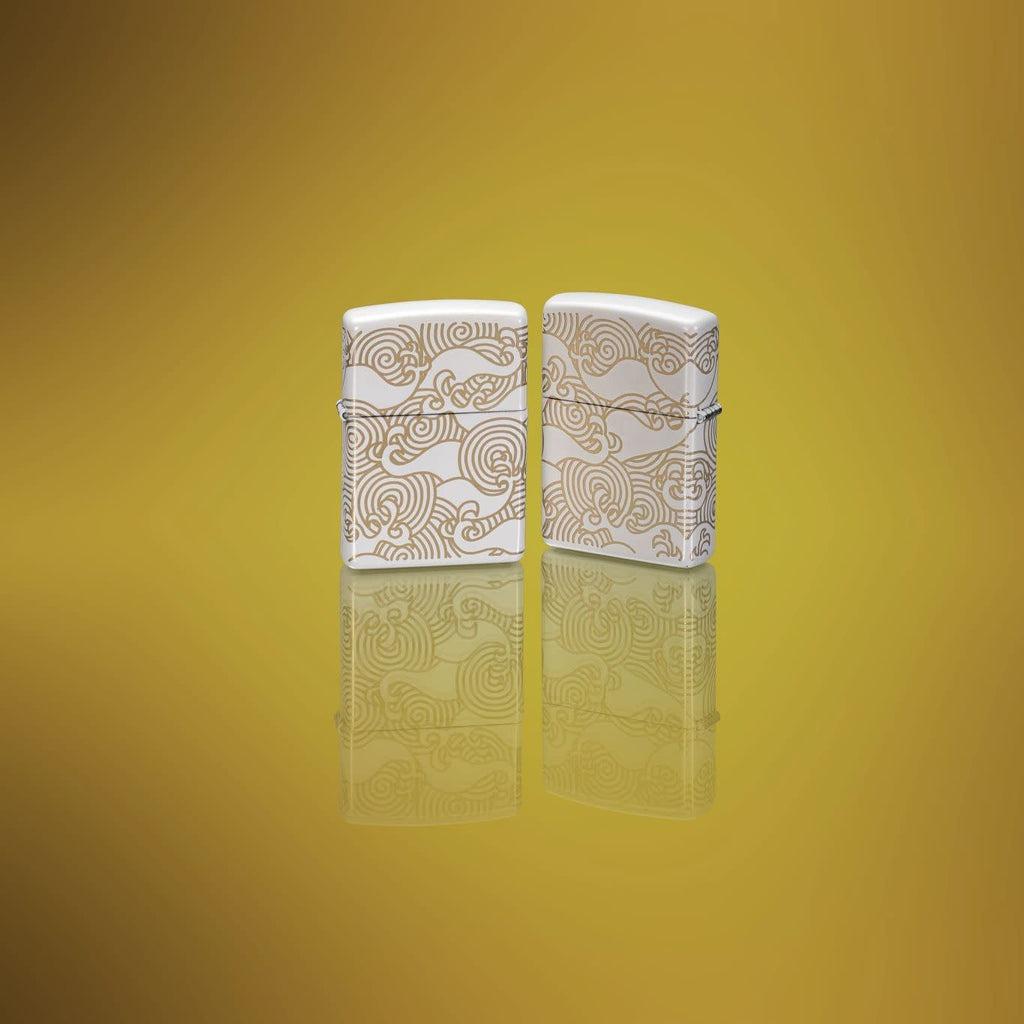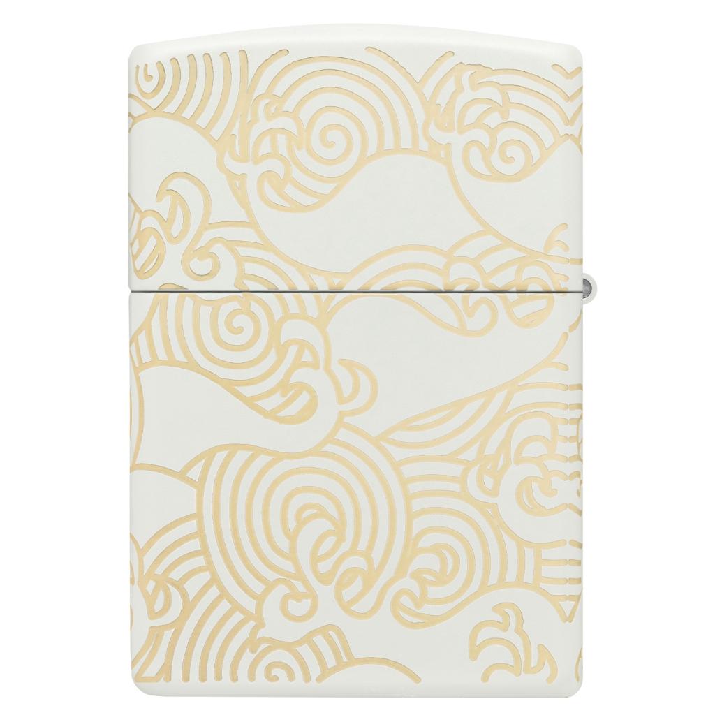 This serene White Matte model marks the debut of our crisp and precise Laser 360° engraving method on our signature matte base models – a treatment that was previously reserved for only the front surface. Revealed in luxurious brass tones, swirling waves tumble and churn around all sides of the piece in the delightfully seamless design. Comes packaged in a gift box. For optimal performance, fill with Zippo lighter fuel.